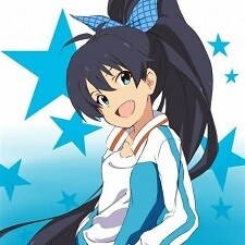 Hibiki is a member of 'Project Fairy', and appears in the PSP Games as a rival. Hibiki has long, black hair tied into a wild ponytail, and is usually seen in sporty outfits, and usually wears hoop earrings. Hibiki is from Okinawa, and is highly energetic and cheerful, and despite rivalries with the other idols, she always remains friendly and happy, without becoming overly competitive like Takane. Hibiki has an outstanding amount of pets, who she happens to lose quite frequently; her pets include a mouse, a hamster, a gerbil, a parrot, a rabbit, a cat, a dog, a pig, a flying squirrel, and oddly enough, a crocodile. Hibiki joins Studio 765 in The iDOLM@STER 2.</em><!--center--></div>