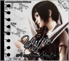 Yuffie Kisaragi (ユフィ・キサラギ, Yufi Kisaragi?) is an optional playable character and self-proclaimed "Materia Hunter" who joins the party hoping to steal their Materia, with the intention of restoring her country, Wutai, to its former glory. Although a skillful ninja, Yuffie is prone to sea and air sickness and shows signs of kleptomania. She has dark green eyes and black hair which is always tied back. She is voiced by Yumi Kakazu in the Japanese releases of her appearances. In the English-speaking territories, she is voiced by Christy Carlson Romano in Kingdom Hearts and Final Fantasy VII Advent Children; she is voiced by Mae Whitman in all of her other appearances.