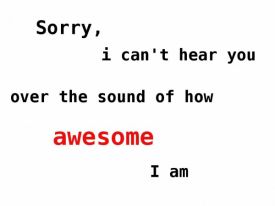 So, I am awesome, as are many many of you. Don't be ashamed by it, don't feel that you are being conceded for shouting it out! YOU ARE AWESOME! AWESOME PEOPLE UNITE!