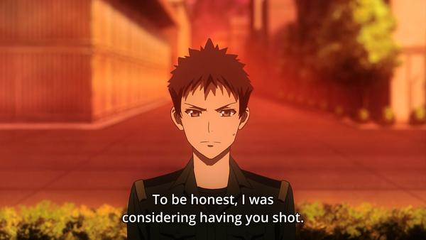 | Great episode, got more insight into the characters and development. It was nice to see Tokimune realise that he endangered the unit and go to take responsibility for it. I can really respect people like that :'-). And poor Jamie basically ending up with the military in the middle of a war. That's gonna be rough. The changes in the opening are interesting... |