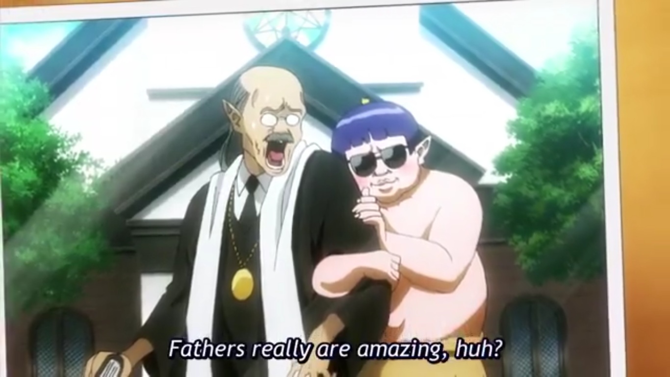 LMAO, Kagura’s boyfriend is an alien. And the kid who gave the letter was just doing it in the alien’s behalf. The tiny crown on his head killed me, lol. LMAO, two episodes in, and dick jokes are brought back in. That bow though… “OTOSAAAAAN” XD