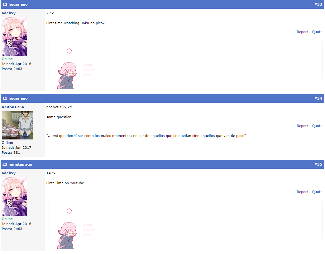 @adelixy I watch a little tiny bit of Boku no pico but when I saw the intro of it I was out completely XD. However I seen Euphoria X.X. My mind will never be the same X.X.