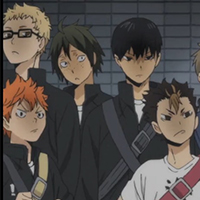 De izquierda a derecha: Hinata, Tsukishima, Yamaguchi, Kageyama y Nishinoya de Haikyuu!!