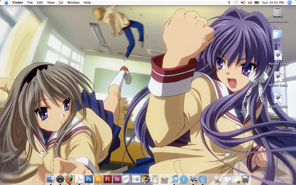| I changed my wall and put my icons back(hurting my eyes). I'm also checking out the Zune theme. While I'm typing this I notice that Rofelos' avatar is the same as my wallpaper. :-D I know, Haibane Renmei is awesome. :-) http://i58.photobucket.com/albums/g268/ZinnKid/rendesk.png |