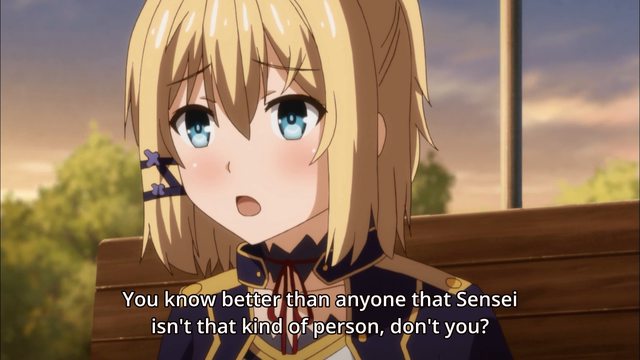 It was hard to watch the duel because of Glenn acting like a jerk. Then left the academy after getting rekt by blonde bastard. And he just have to ruin the nice moment between the two.