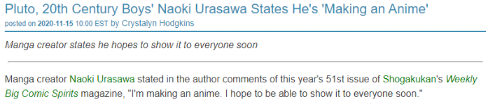 I hyped this news way too much... i thought it was a 20th Century Boys or Billy Bat adaptation.