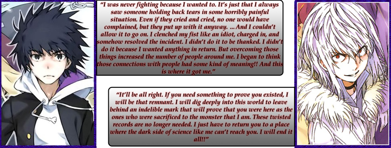 Yeah, as long as the quality doesn't deteriorate, I'm cool with Index hitting a 100 volumes. While I can't say that the quality was constantly improving (some major bumps, like the Baggage City arc), it was certainly keeping up for the most part. NT had some of the best arcs in the series (the entire Othinus Arc), so I can't be too harsh on it haha.