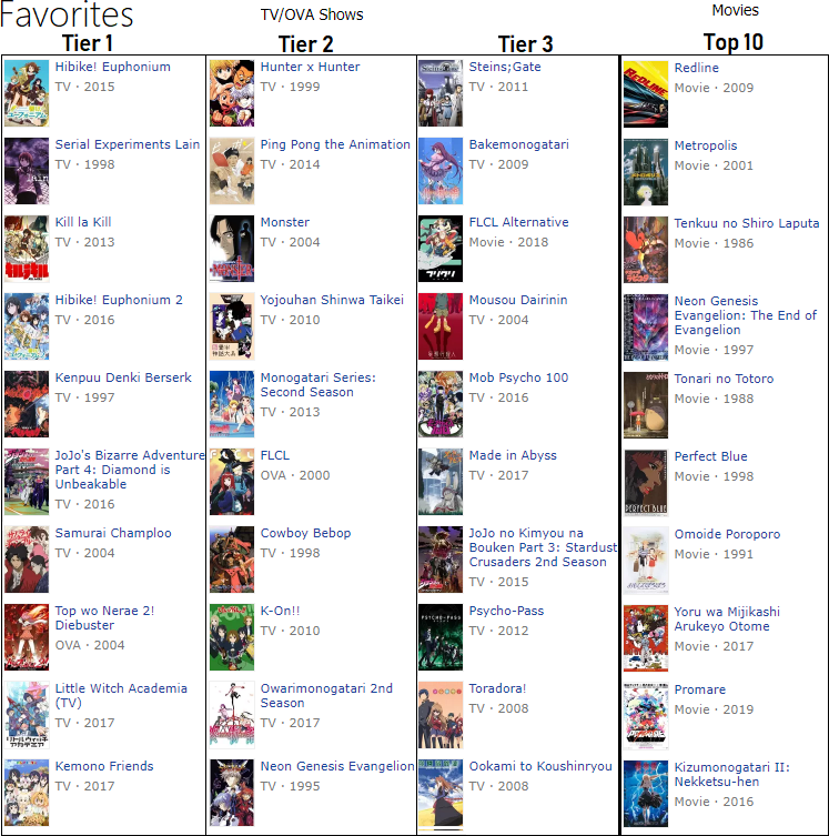 The first point I made is so important I'll do it again. A show could literally exist with consensus 10s in story, animation, characters, "enjoyment" but with a 5 in soundtrack many people would call it an 8 or a 9, despite literally having literally the best features in everything else. Since soundtrack is weighed as much as characters or animation, the ideally 'perfect' show is not considered a masterpiece because of one small irrevelant factor in it. Think about the last time you scored a show an 8 or a 9 rather than a 10 because it didn't have a great soundtrack. If your ratings actually mean anything, the answer should be never. This might not make sense, as the common argument is a 5/10 is a 50%, a failing grade. Considering how 7/10 is a decent score, a C-, I really think this holds no water.