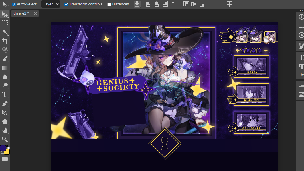 yup! i am working on a madam herta layout :D i recently pulled her and now she's one of my favorites haha. i am also learning photopea while working on it since it offers more features than pixlr which i was using before, it's been a rocky start but i am getting a bit familiar with the new ui and options. but it's on hold because my laptop's charger died a couple days ago so i can't access the files until i get a new one. so in the meantime i've been making signatures to familiarize myself with new software :]